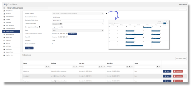 Supporting updates include improvements to Exchange synchronization, unsubscribe and refresh endpoints, faster contact import, and more reliable Office 365 integration. The Shared Calendar UI has also been refined for clarity and ease of use.
