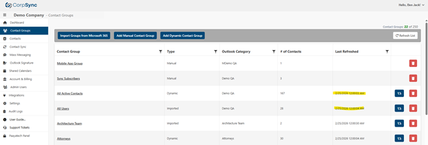 Each group now displays the most recent refresh date and time, giving administrators improved visibility for tracking group activity and ensuring data accuracy across the platform.