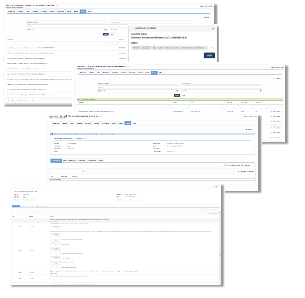 - Integration to UniCourt API to provide live Court Dockets within Matter Dashboard